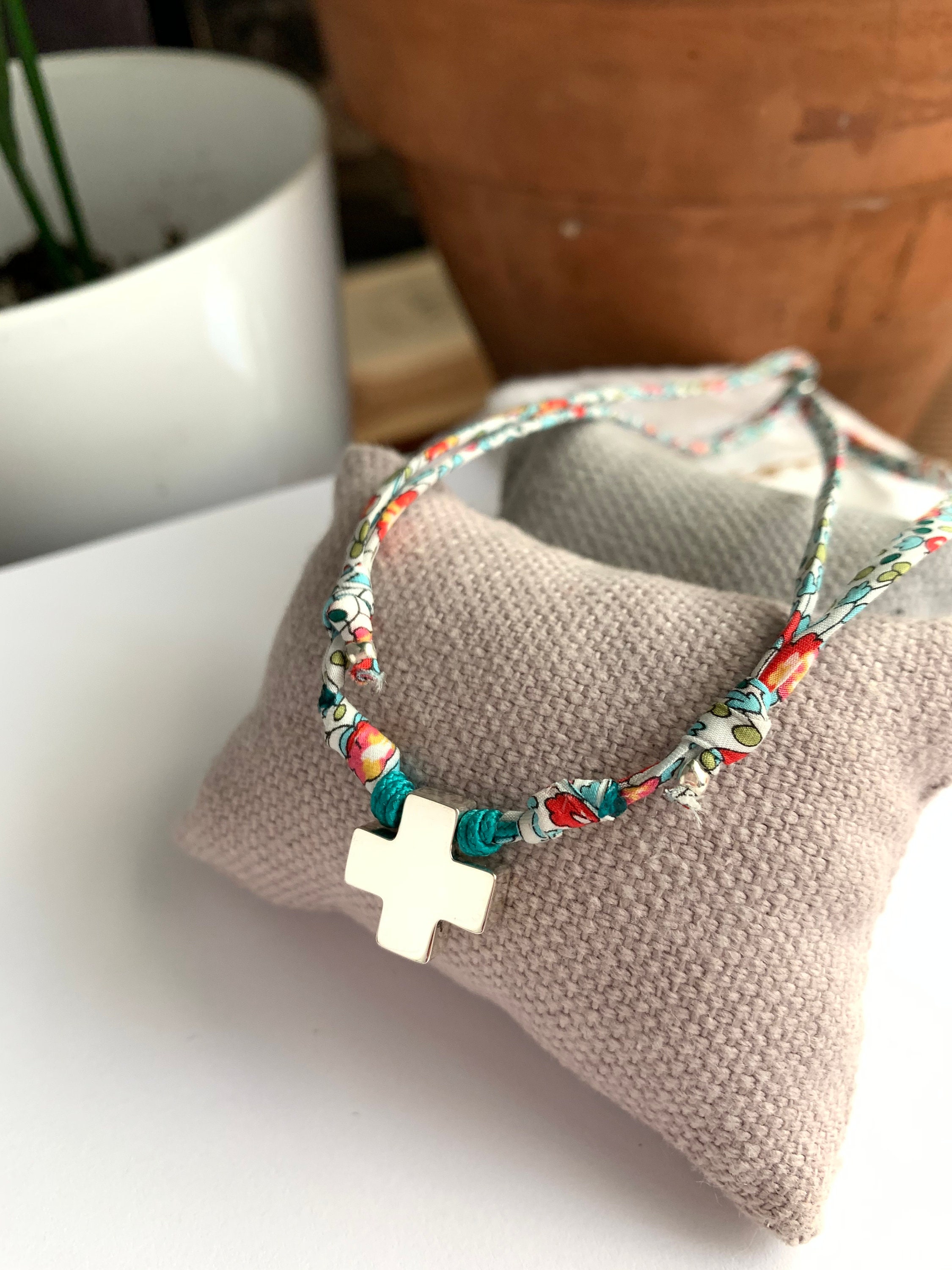 Our HOPE LIBERTY cross necklace is made with a 17mm Sterling silver cross and original Liberty cord. It has a sweet design and is perfect way to wear your faith throughout the spring and the summer.